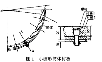 銅礦選礦產(chǎn)現(xiàn)有2臺(tái)φ3.2m×3.1m格子型球磨機(jī),均為1959年投入使用的格子型球磨機(jī),目前,這倆臺(tái)格子型球磨機(jī)年處理礦石35~40萬(wàn)t(較多年處理量曾達(dá)60萬(wàn)t以上),在簡(jiǎn)體橫斷面上,沿筒體圓周有24塊小波形襯板一塊壓著一塊,格子型球磨機(jī)每塊用2只M36螺釘與筒體固定,相鄰倆塊在筒體長(zhǎng)度方向上的間隙錯(cuò)開(kāi),格子型球磨機(jī)通過(guò)長(zhǎng)期對(duì)其使用和失效情況的考察發(fā)現(xiàn),失效報(bào)廢幾乎都是因螺釘松動(dòng)引起格子型球磨機(jī)筒體漏砂。