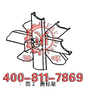 (1)在要測(cè)量的部位設(shè)測(cè)標(biāo)架(圖2),測(cè)標(biāo)架由四根槽鋼構(gòu)成,中心開?80-?100毫米孔,孔面以帶鉸鏈的金屬翻板覆蓋。測(cè)標(biāo)架可使用簡(jiǎn)體段節(jié)在運(yùn)輸中的支撐裝置。